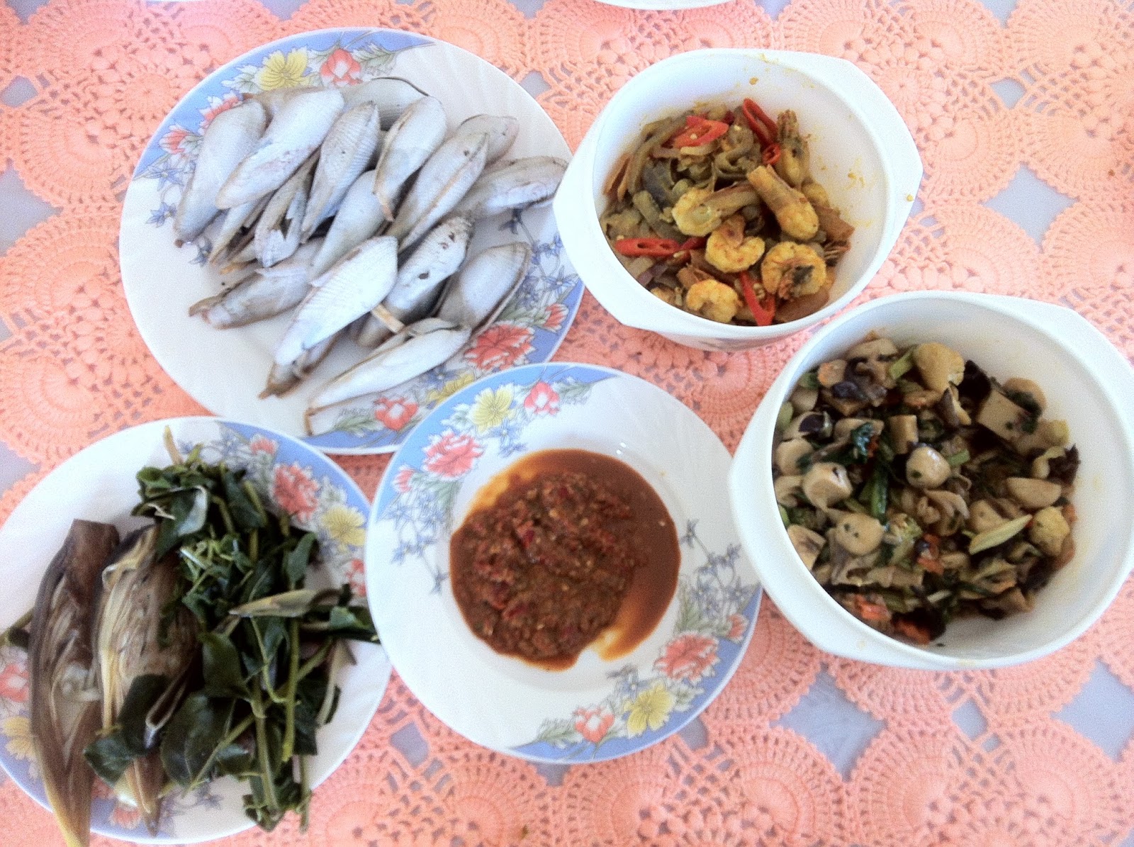 mentarang, udang goreng minyak, ulam ulaman, sayur campur fish ball and sambal belacan